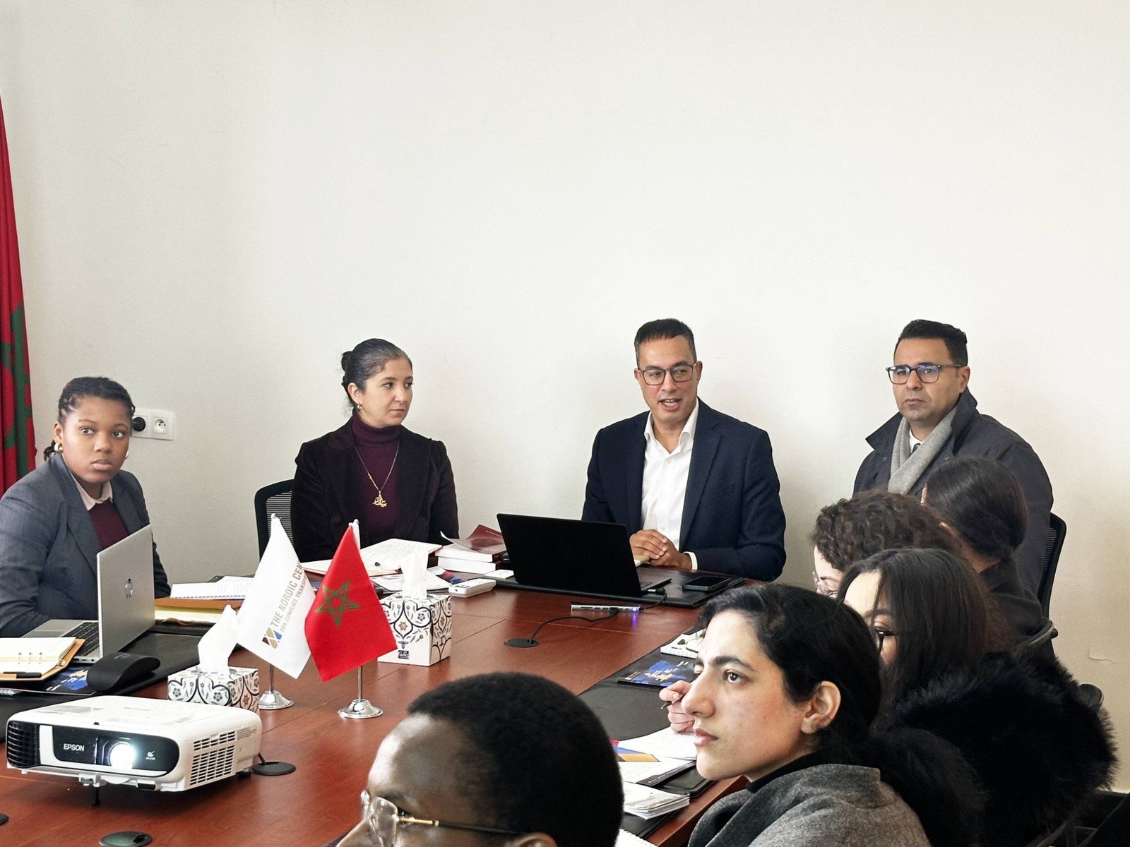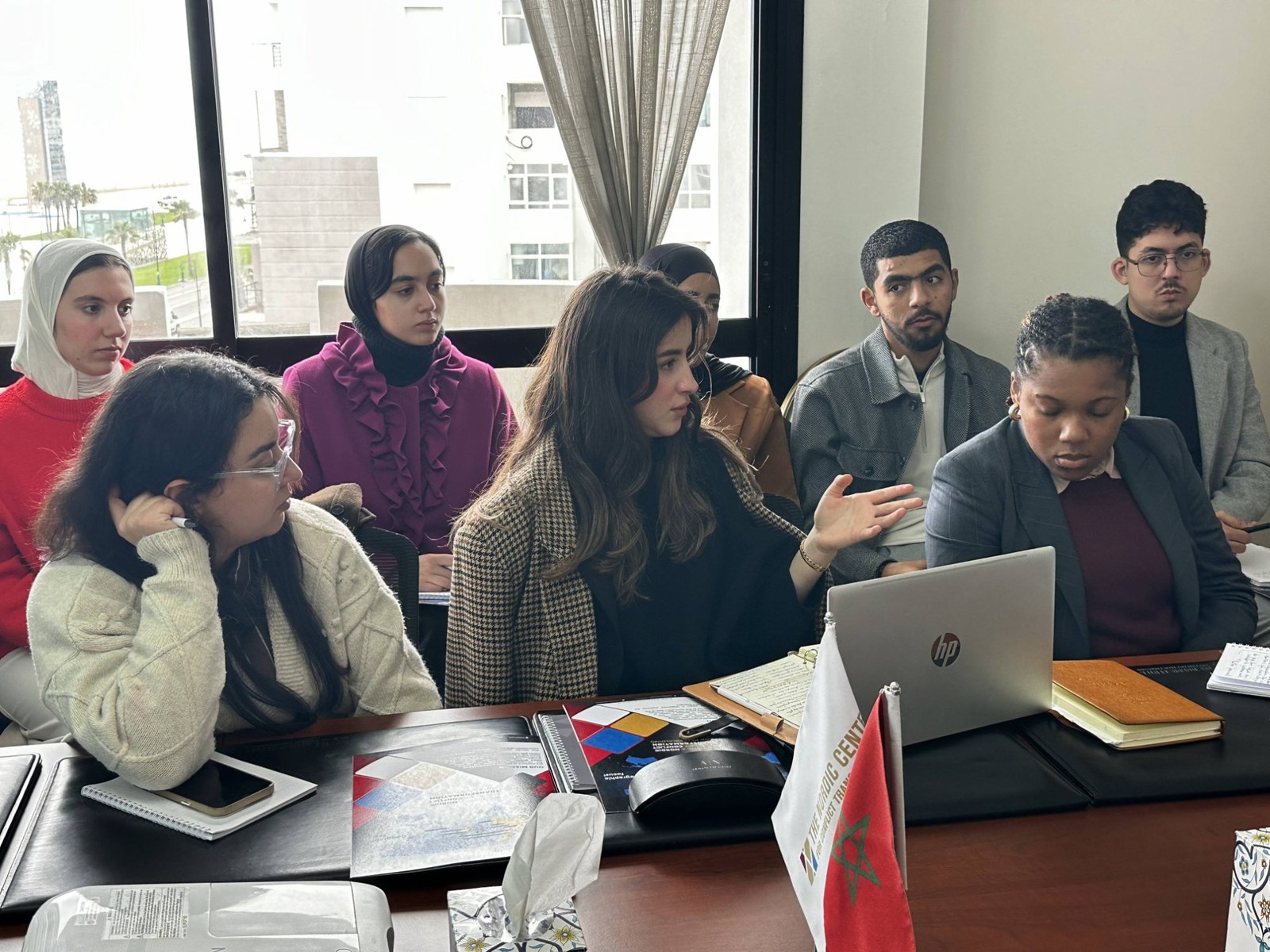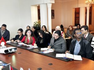 On March 5, 2026, the Nordic Center for Conflict Transformation (NCCT) hosted students from the Master’s program in Public International Law at the Faculty of Legal, Economic, and Social Sciences at the Abdelmalek Essaâdi University in Tangier. Dr. Sara Sefrioui, Professor of International Law and Coordinator of the Master’s, and Dr. Mohcine Karzazi, Professor of Public Law at the same university, led the students’ delegation. The visit provided an opportunity for students to engage with NCCT’s work and discuss the practical dimensions of international law in the fields of conflict transformation and peacebuilding.